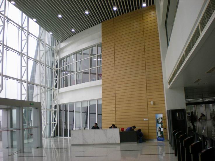 室內裝飾有異型鋼板吊頂、鋁板吊頂、礦棉板吊頂、石膏板頂棚,鋁圓吊頂、硅鈣板吊頂、鋁格柵吊頂及乳膠漆頂棚、墻面有干掛大理石、鋼板墻面、木飾墻面、軟包墻面及鋼板包柱、玻璃隔斷、?;u、乳